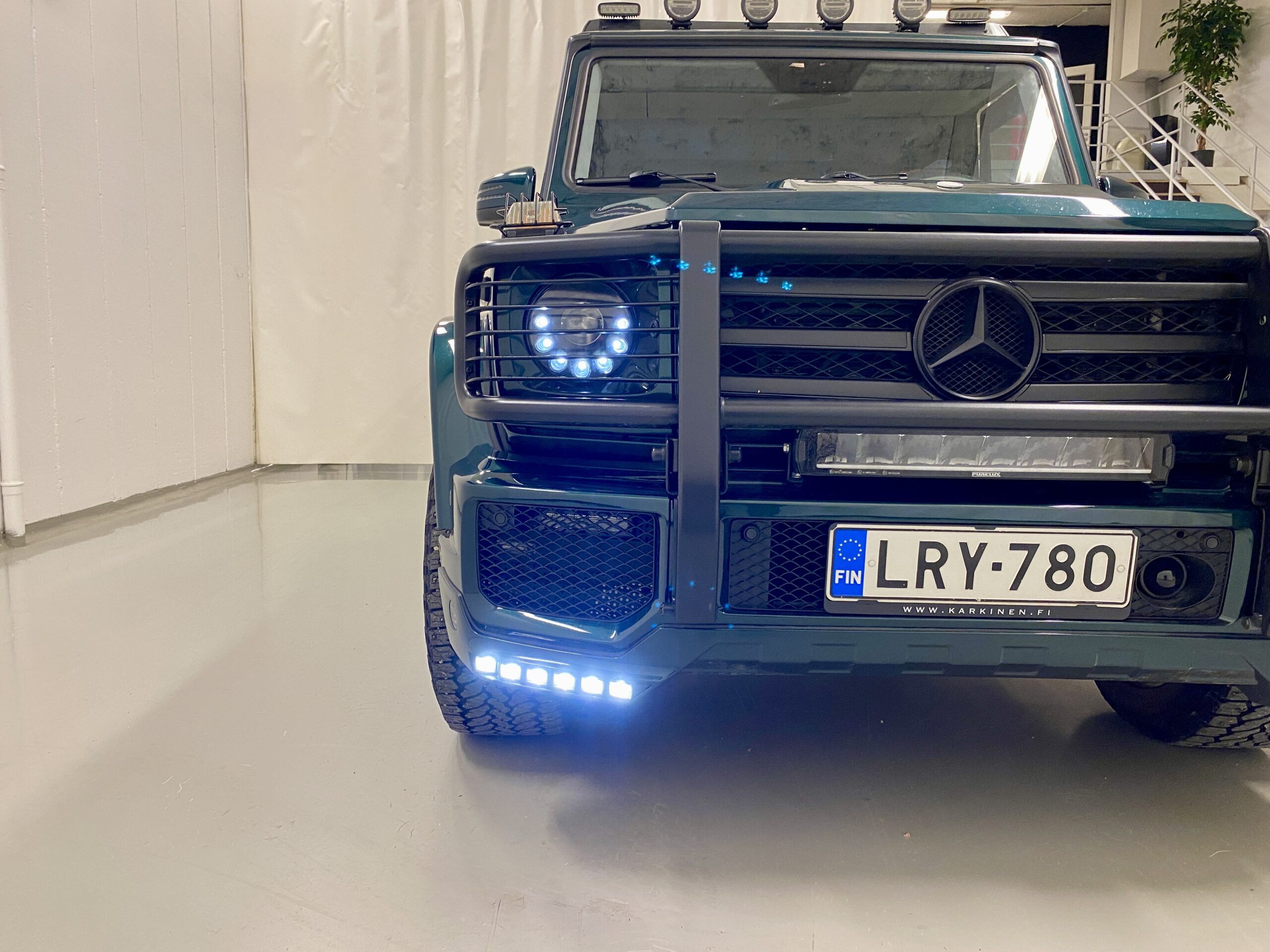 Kuningas-maasturi kuningas-moottorilla! Kauppiaan omassa harrastekäytössä ollut, tyylillä ja rahalla rakennettu G-wagon. Suomeen uutena tuotu, ensimmäinen huolto tehty Veholla. Täydellinen huoltohistoria, hyvin huollettu aina: vaihdettu mm. jakoketju ja laahaimet vaihdettu, turbot tarkistettu, suuttimien prikat vaihdettu, hiljattain vaihdettu mm. kaikki voimansiirron öljyt ja suodattimet+ ilmastoinnin kompressori. Autossa 24kk lisäturva voimassa vielä 10/2026 saakka. Hyväkuntoinen yksilö joka kääntää katseita.