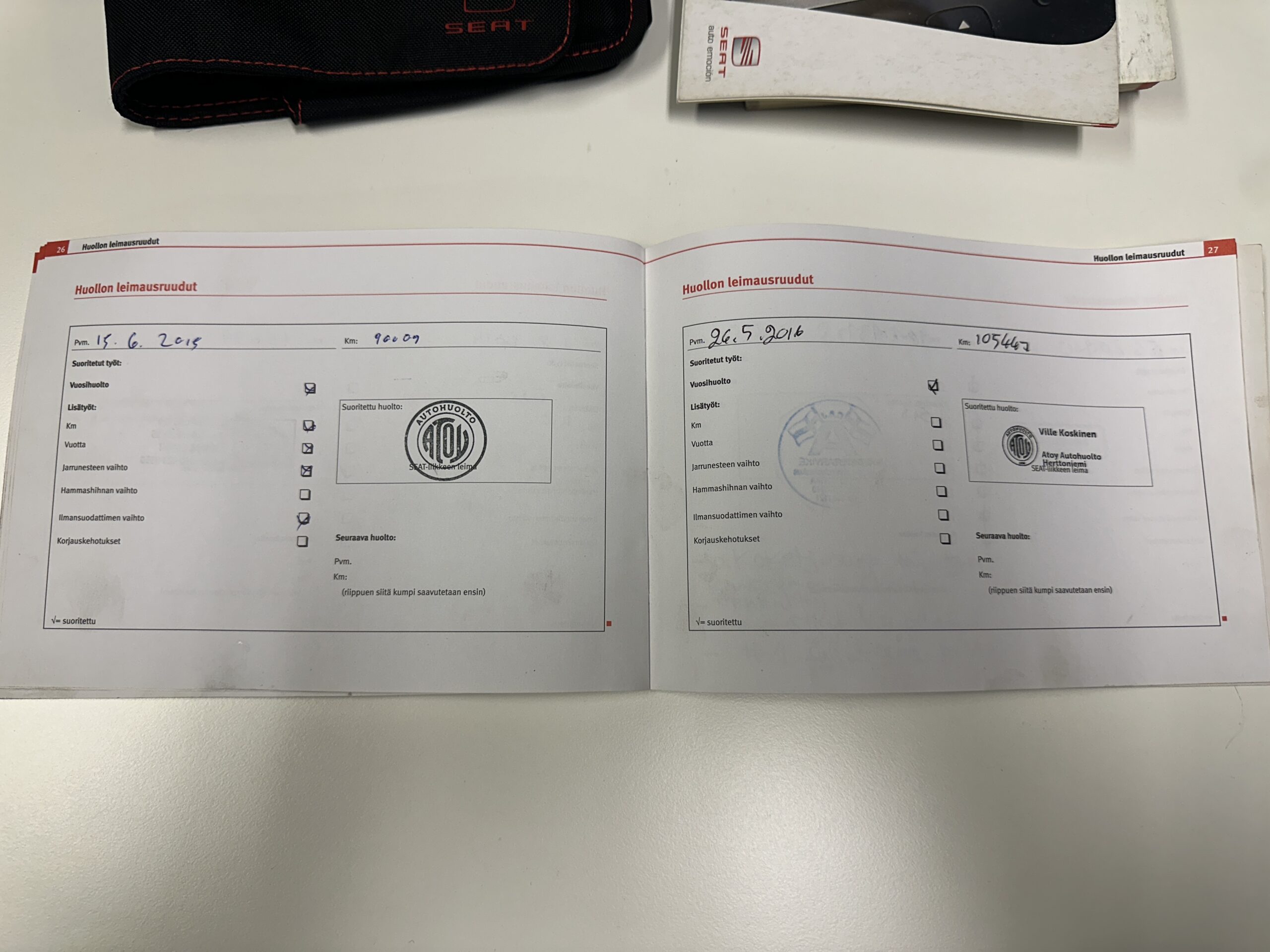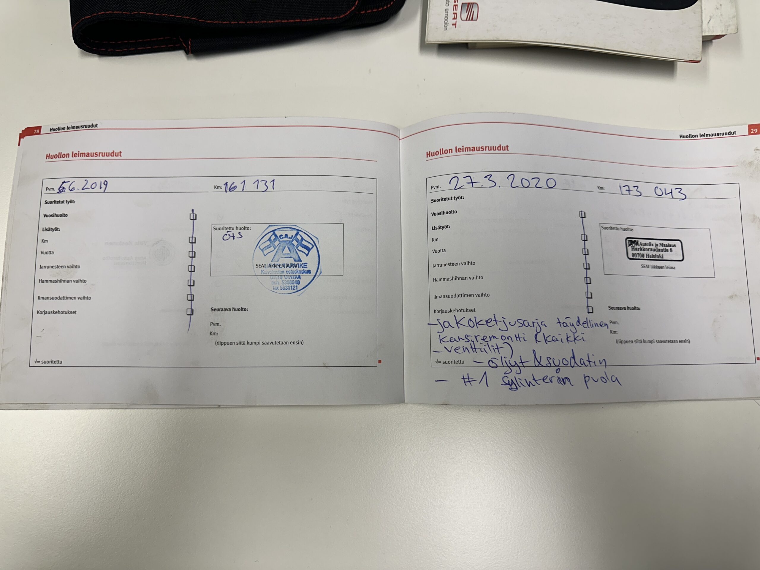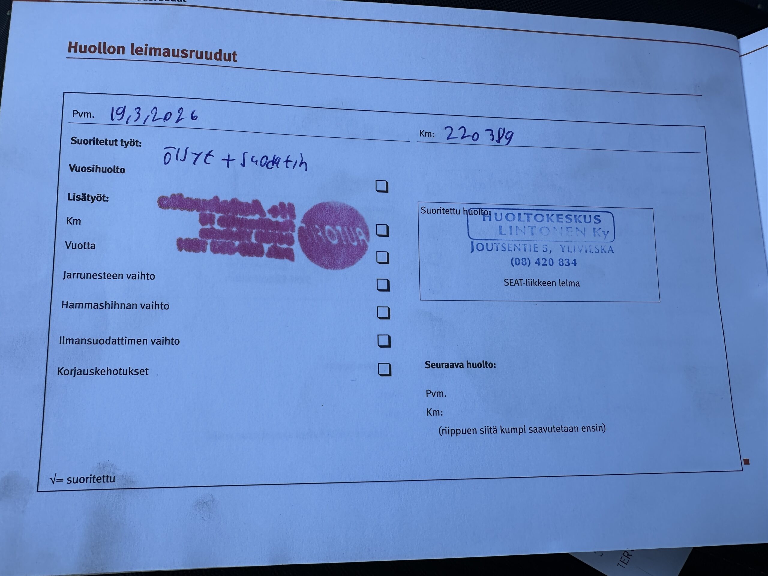 • huoltokirja, viimeisin huolto 220tkm