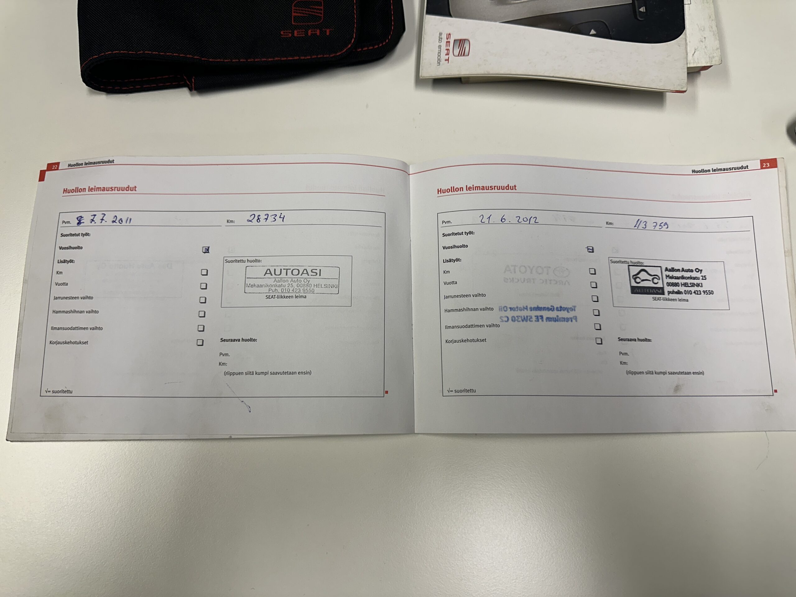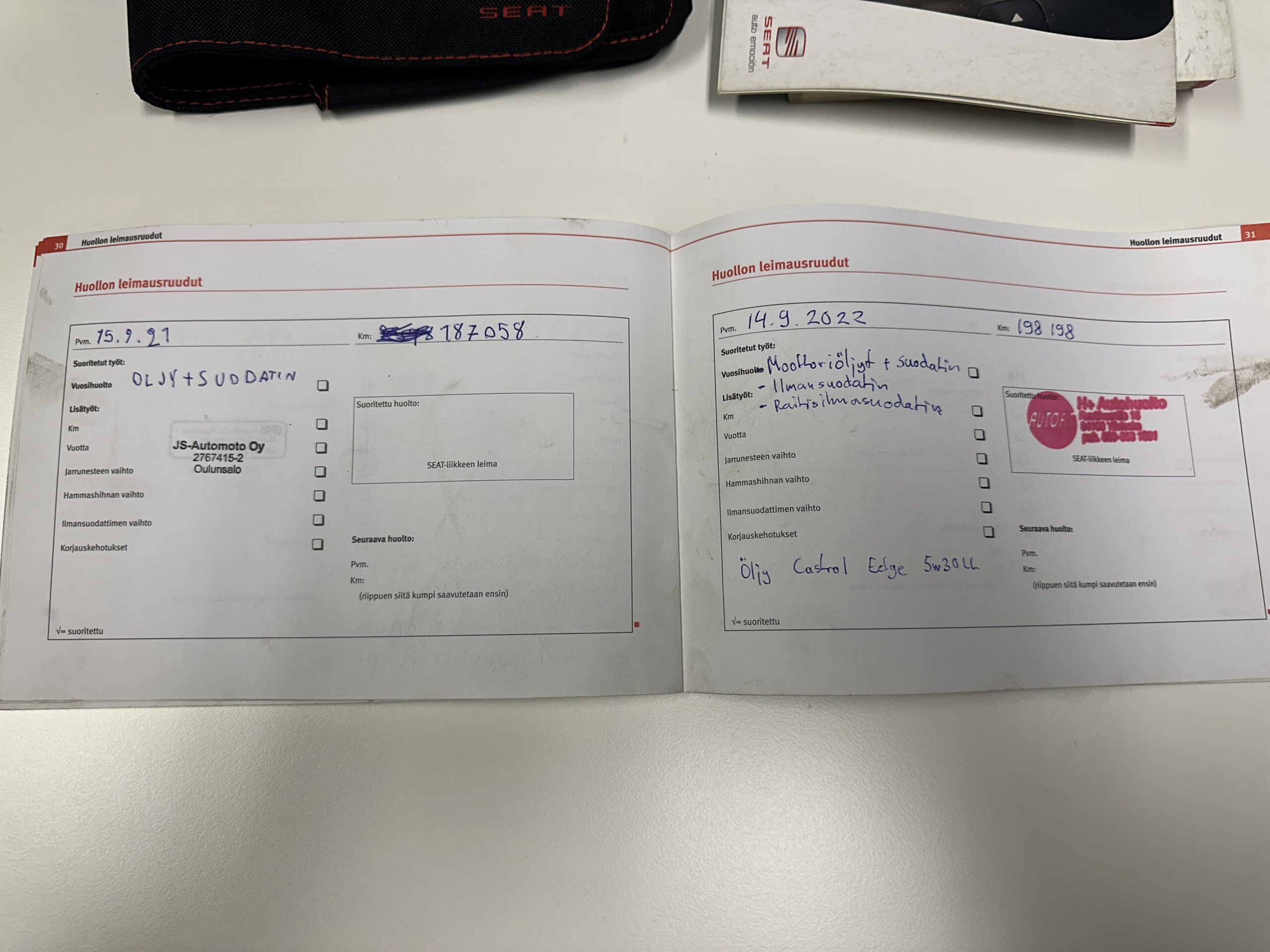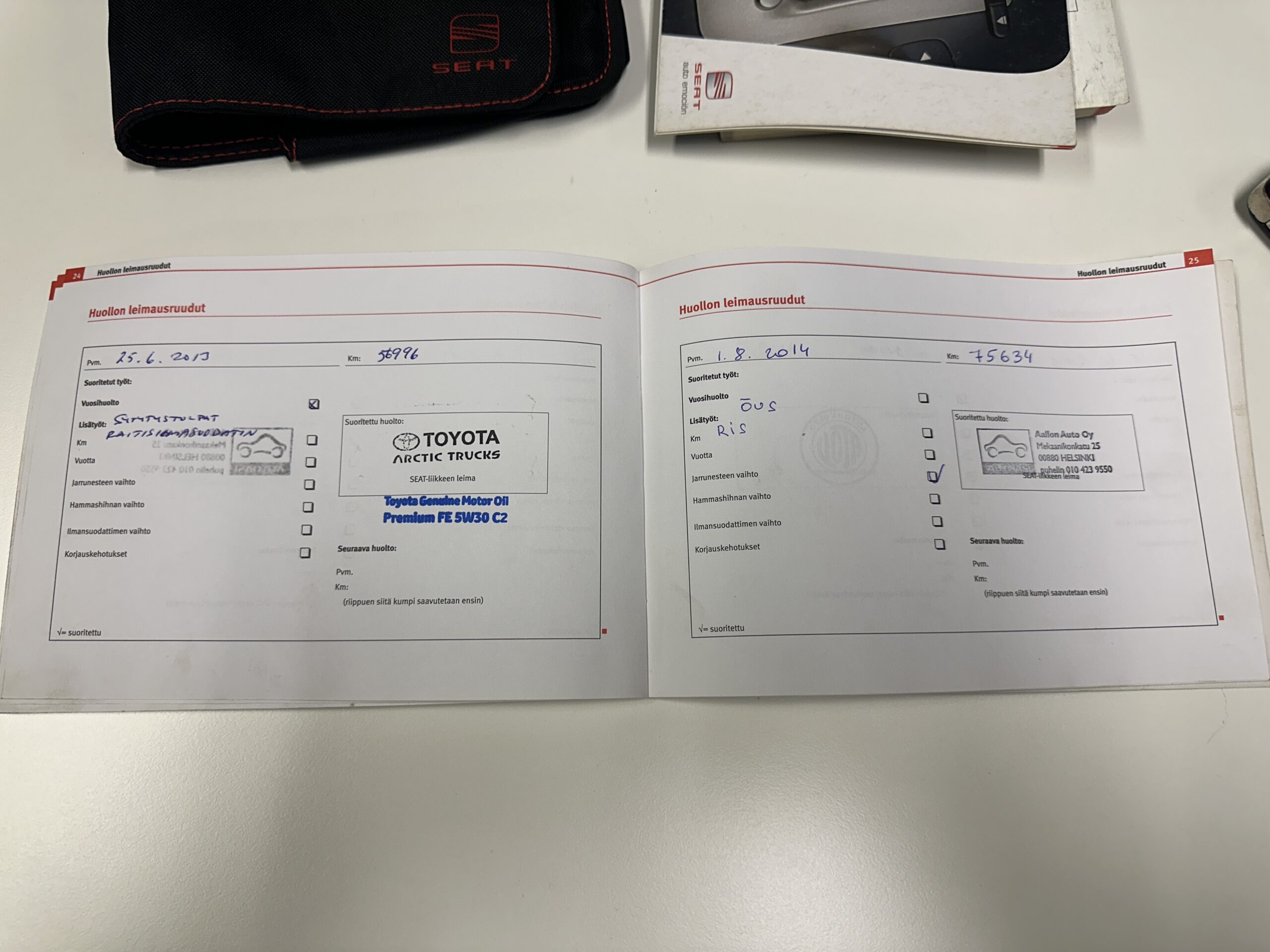 • huoltokirja, viimeisin huolto 220tkm